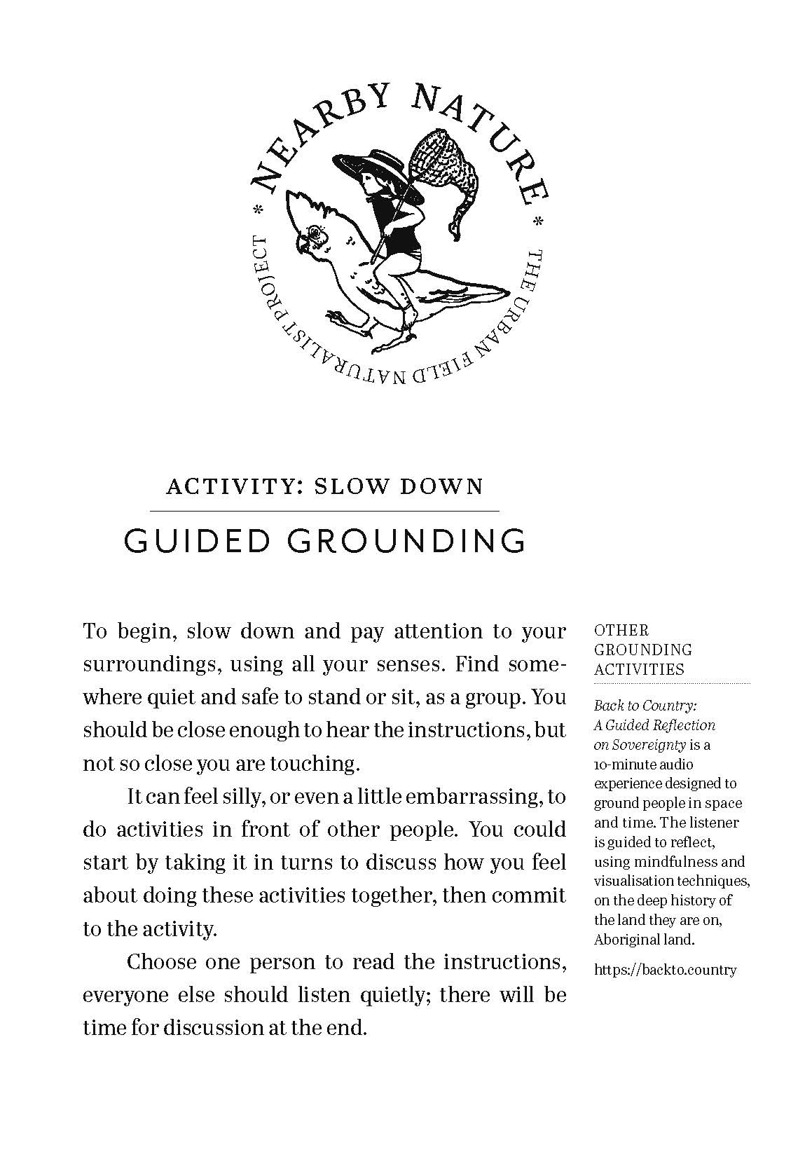 Nearby Nature: A walkshop to connect with urban nature, developed by Caitlyn Forster, Dieter Hochuli and Zoë Sadokierski, in collaboration with headspace: Youth National Mental Health Foundation. The first iteration of the walkshop was held at Oatley Park on 16 November 2023. This is part of an ongoing series of walkshops developed alongside the larger Urban Field Naturalist project.
