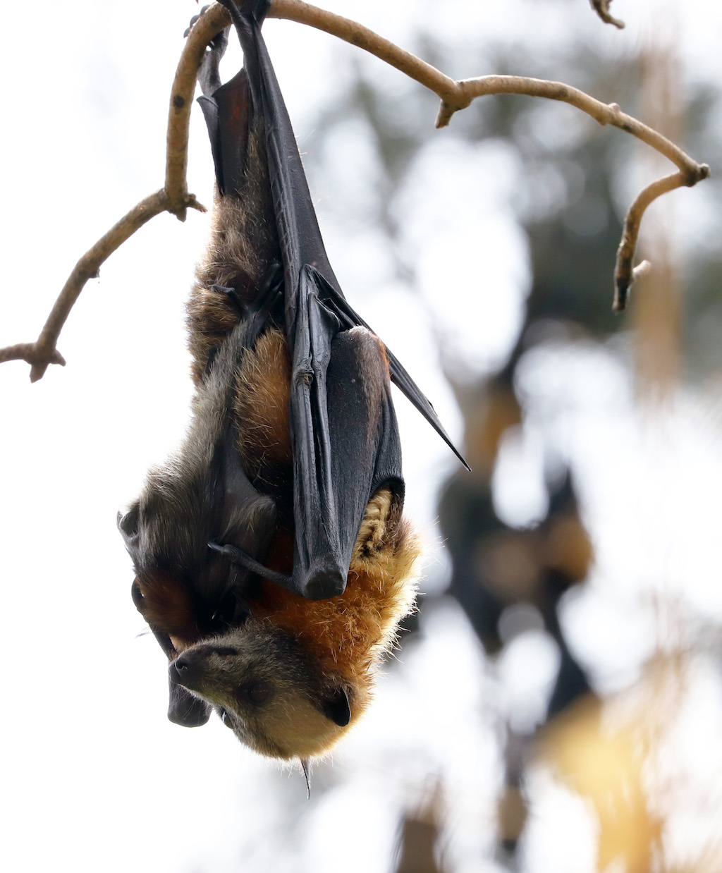 The grey-headed flying-fox (Pteropus poliocephalus), or fruit bat, often has a bad reputation amongst its urban neighbours. Sure, they can be noisy, and yes, sure, they might make a mess from time to time – who doesn’t? Yet one thing that cannot be denied is that (aside from being excellent pollinators) they are exceptional mothers. Flying-fox females are pregnant for six months of the year before giving birth to, usually, one adorable pup. This pup is born, crawls immediately to its mother’s teat (located conveniently below her armpit) nestles in and proceeds to stay there, where it will nurse and be nurtured, for the next four weeks.