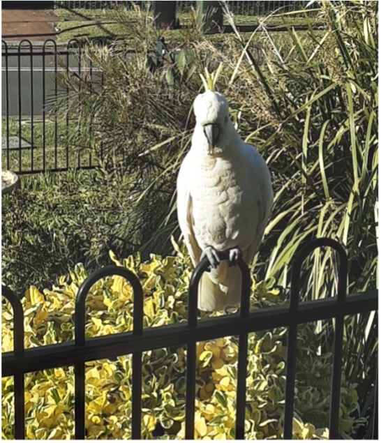 My eyes widen. A sulphur crested cockatoo was waiting for me. I had never seen one so close, let alone within a foot of my front door.