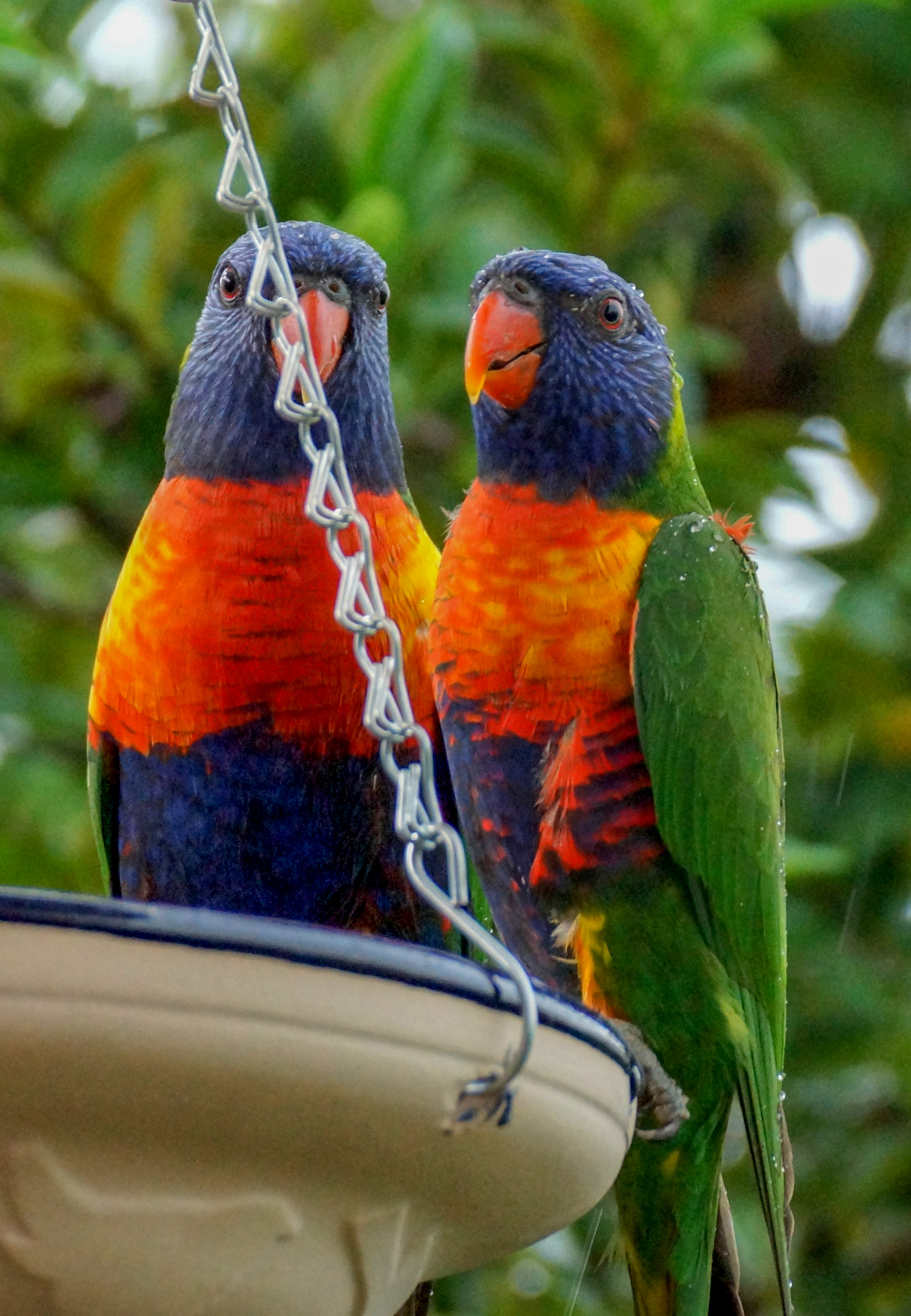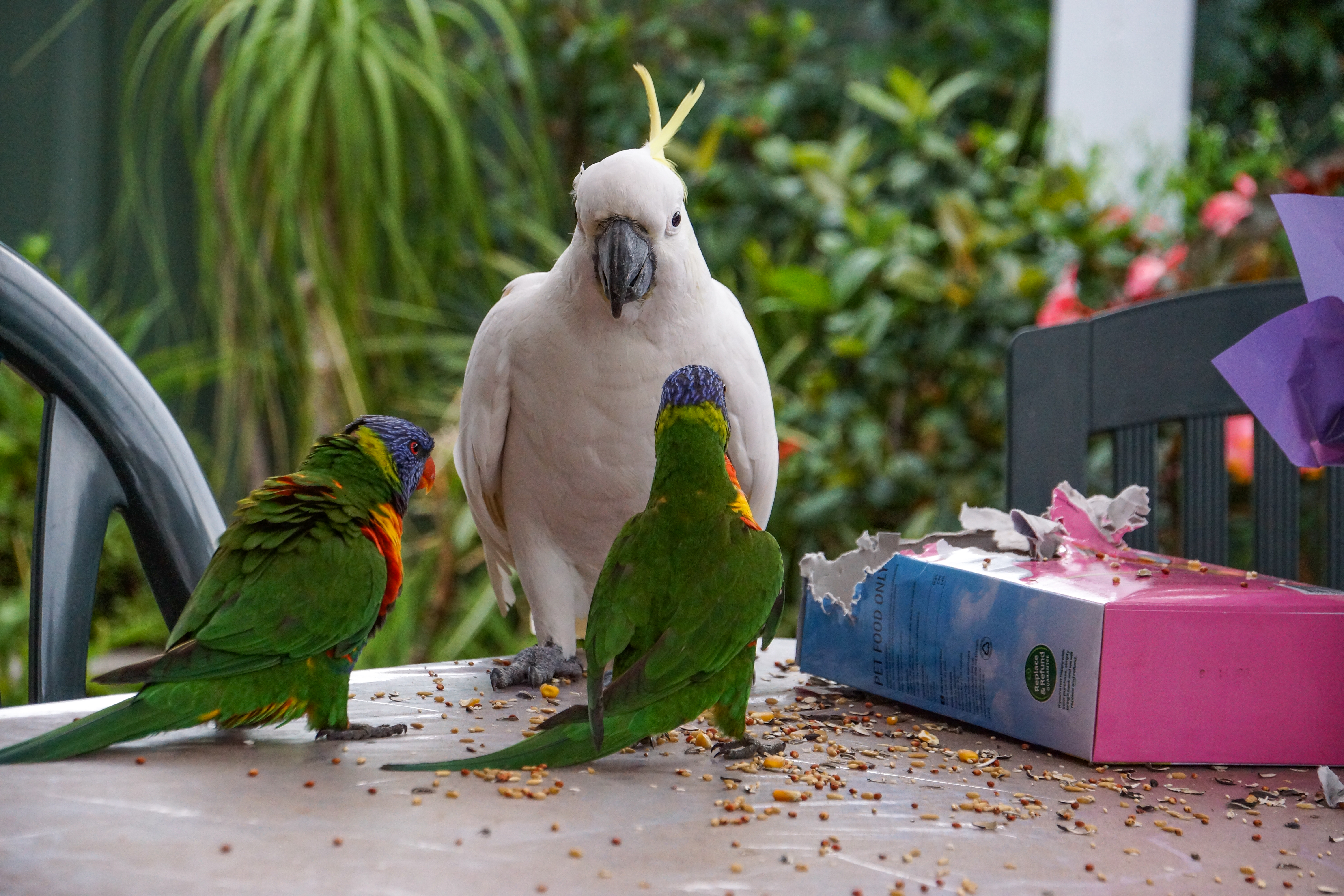 Some months later I had to stop providing seeds for the birds. One day, when the cockatoo was at the feeder, the lorikeets came in to the feeder too. But this time, the cockatoo stood up to the lorikeets and things quickly became very nasty. The lorikeets soon flew away and once the cockatoo had finished, I took the feeder down. What had once been a lovely social interaction between birds had become a violent attack involving all three. Not a nice thing to happen.