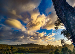 As the first rays of light reach the moist leaves of the Gum trees, Eucalypts, and various grasses, the water molecules get excited and leap into the cool crisp air.