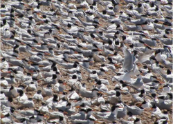 The Crested Terns with their ready for the races ‘fascinator’ head covering, were hovering above, gliding over and sunning themselves on the rocky wall of the breakwater.