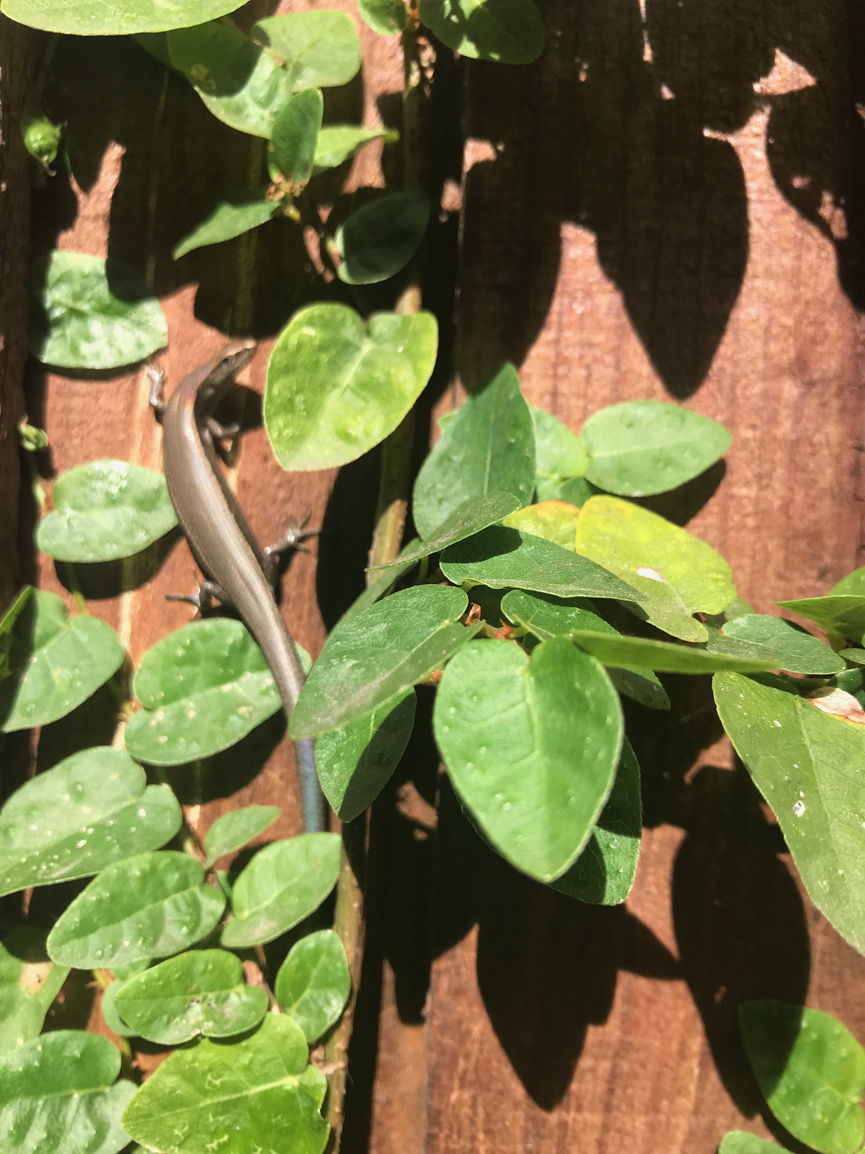 One, two – four. The lounge of lizards emerges but seem anything but relaxed. The skittish movement of skinks reflect the anxiety of the day. Unsure whether to run away, or stay and hope they won’t be noticed. The warmth of the sun entices them out as I mourn the loss of the tree, they welcome the light in.
